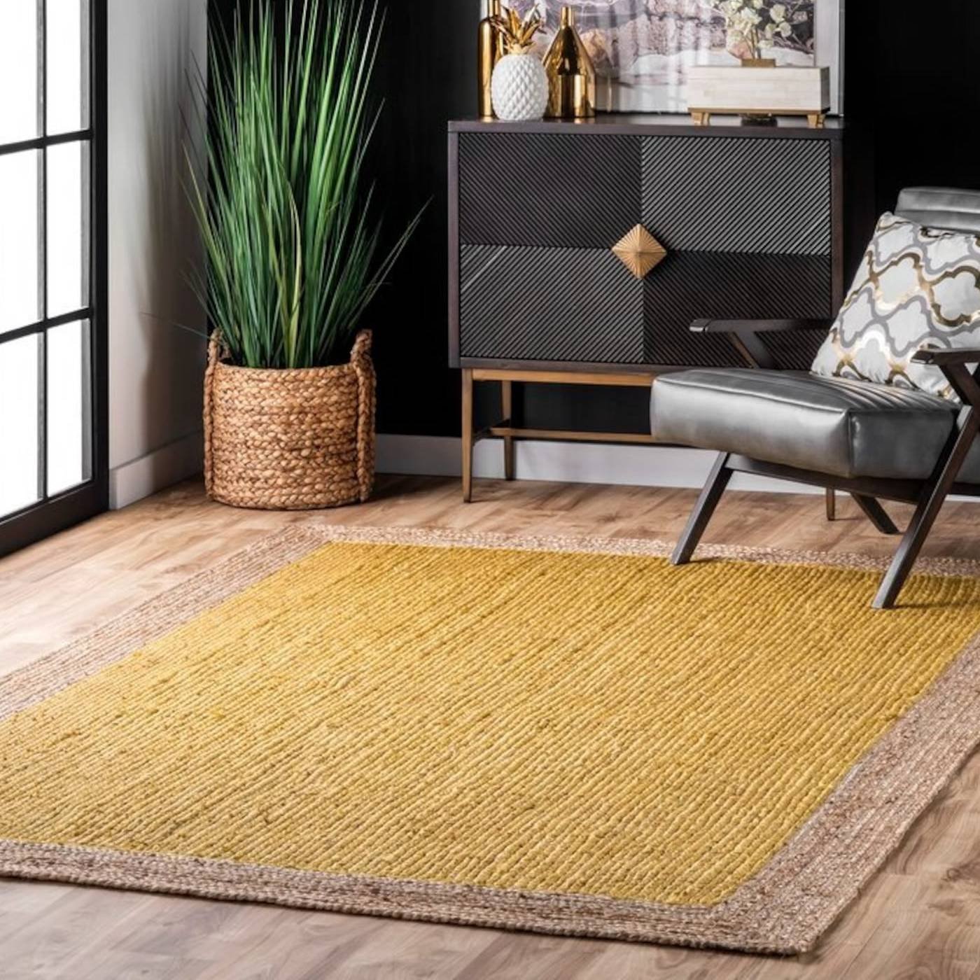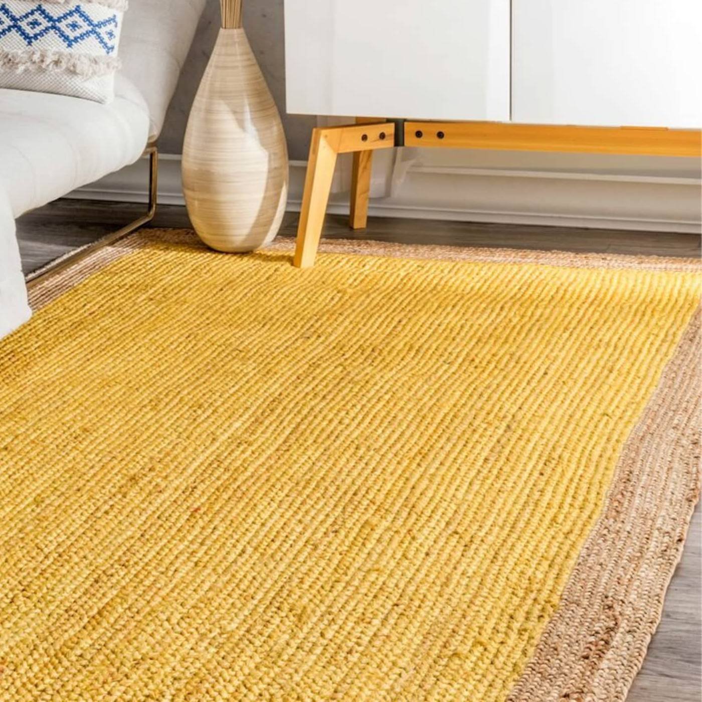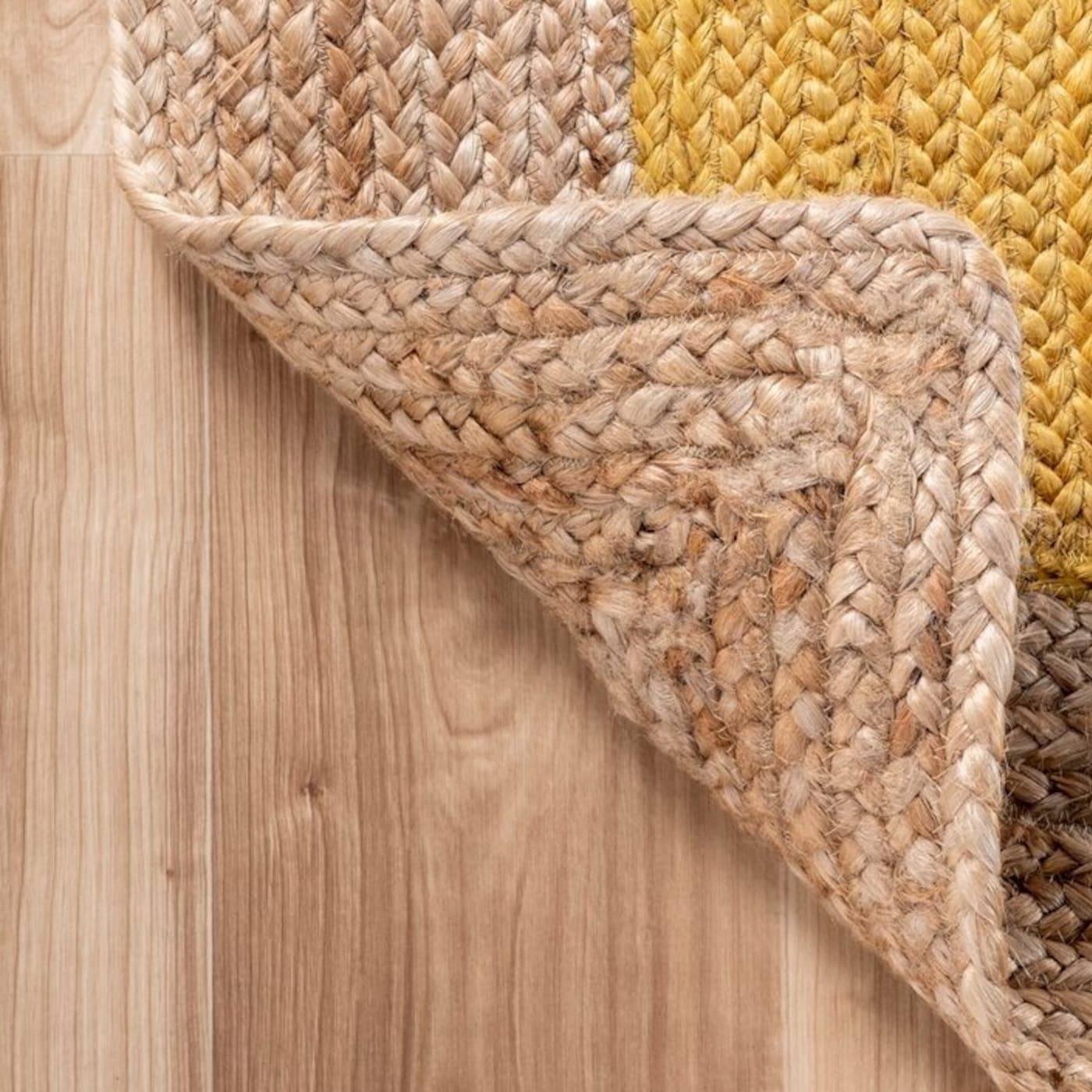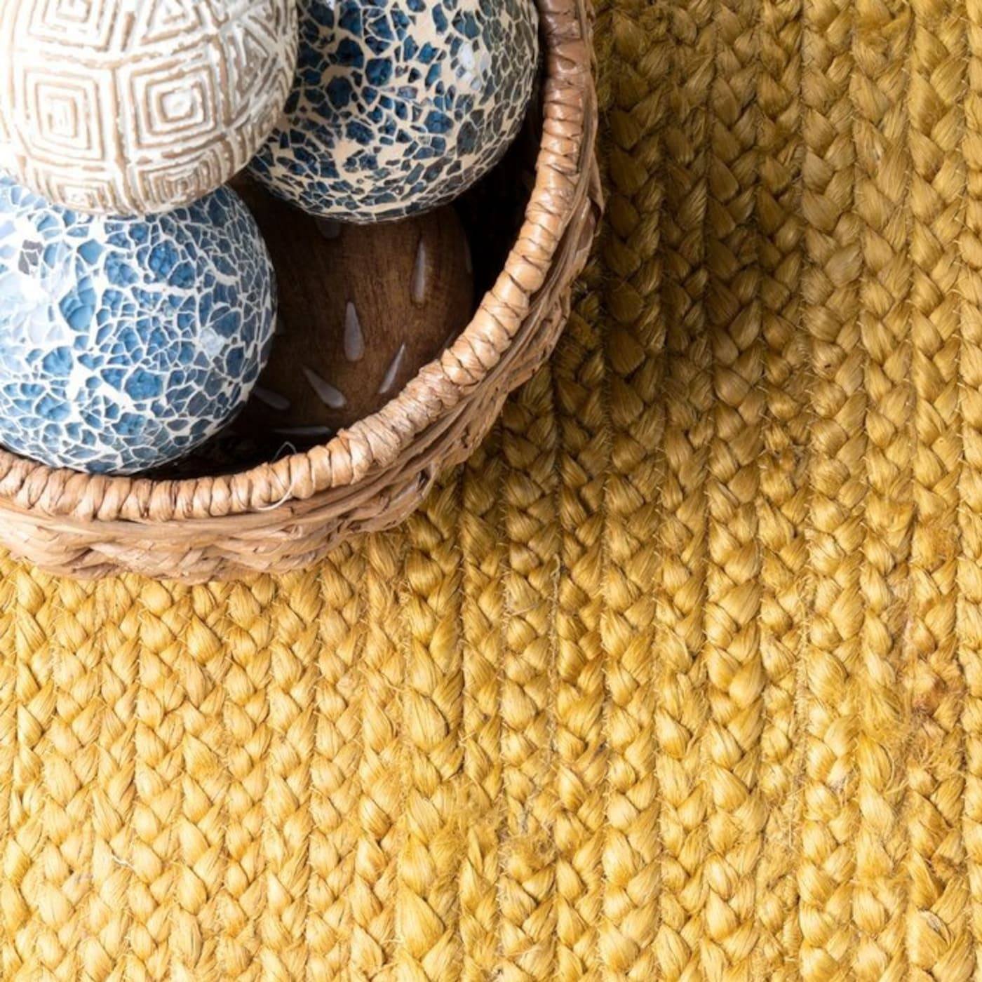 Förvandla ditt utrymme med den livfulla charmen hos denna gula jute-matta