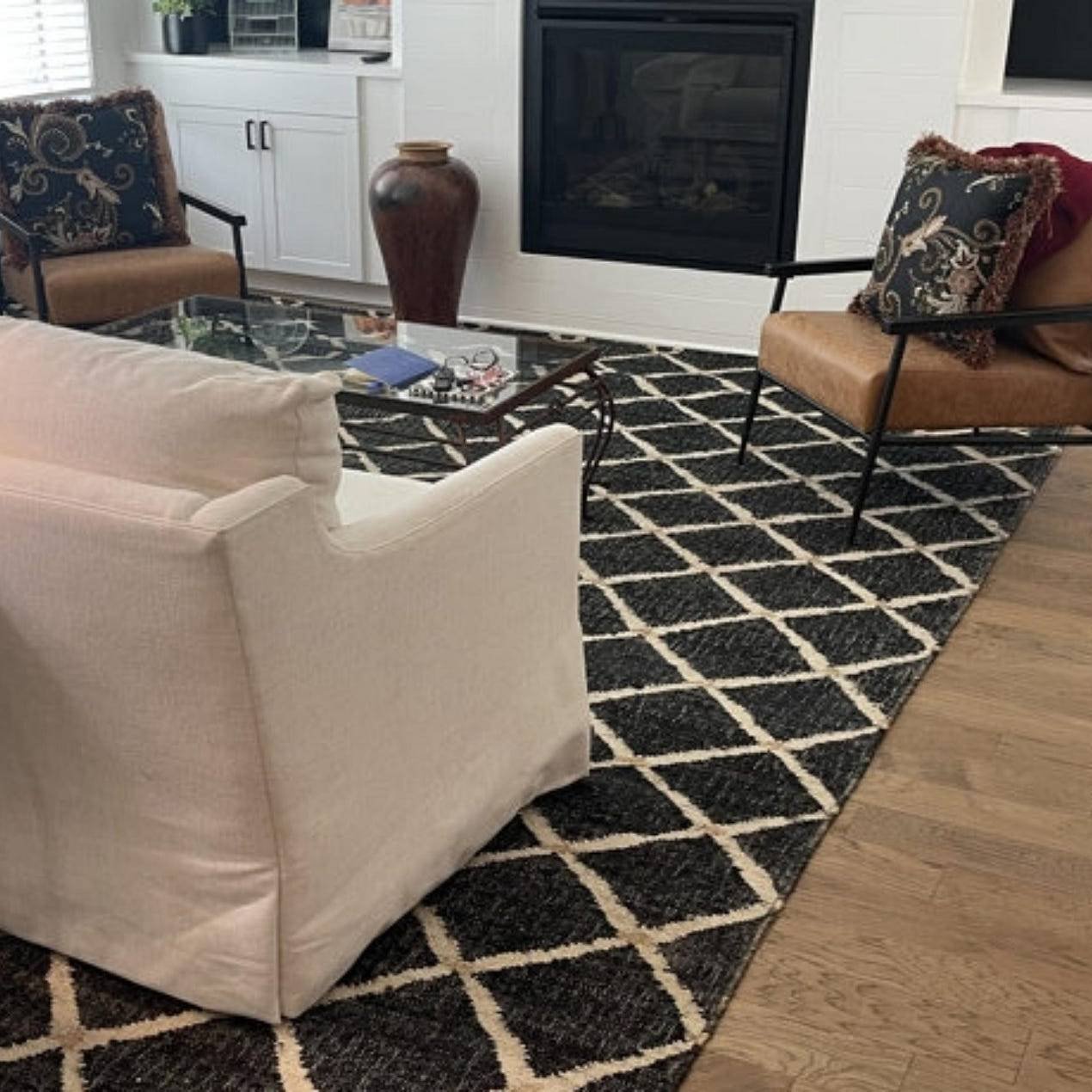Förhöj ditt utrymme med den unika charmen hos denna Black Diamond Cotton Jute Area Rug