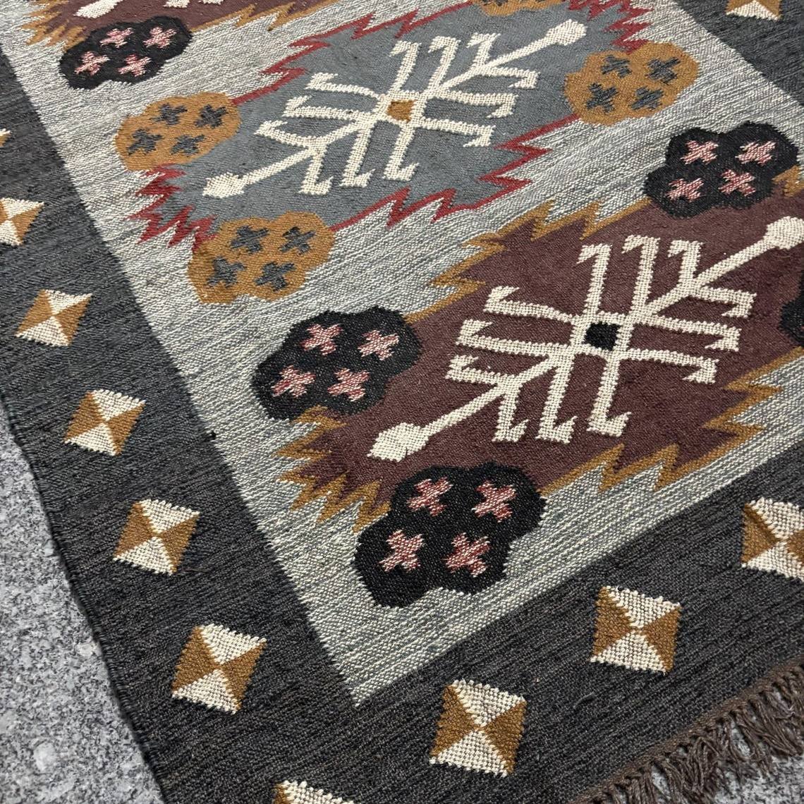 Förhöj din heminredning med denna fantastiska Boho ull jute kelimmatta, skickligt tillverkad av en blandning av 70% ull och 30% jute. Dess dynamiska mönster och rika färger ger värme och karaktär till alla rum, vilket gör den perfekt för högtrafikerade områden. Denna matta är idealisk för vardagsrum, barnkammare eller som en unik dörrmatta och kombinerar hållbarhet med en vintageestetik, vilket säkerställer att den kompletterar din stil samtidigt som den klarar tidens test.