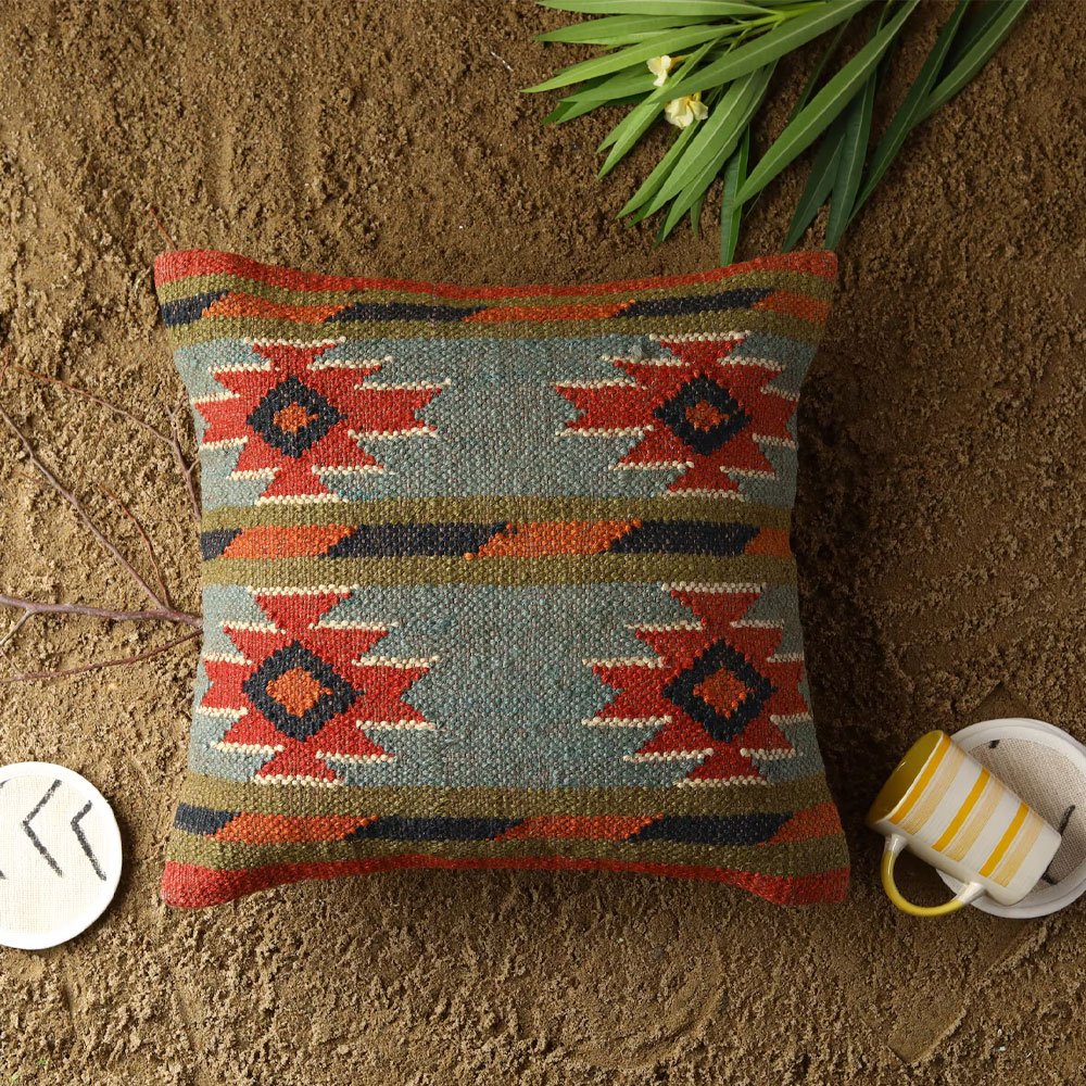 Förvandla ditt vardagsrum med detta utsökta handvävda kuddfodral, som blandar jutens naturliga skönhet med ullens värme. Dess vintage Kilim-mönster och jordnära toner skapar en mysig atmosfär, perfekt för alla årstider. Denna miljövänliga möbel är perfekt för att förhöja din soffa eller säng och ger både stil och komfort till din inredning.