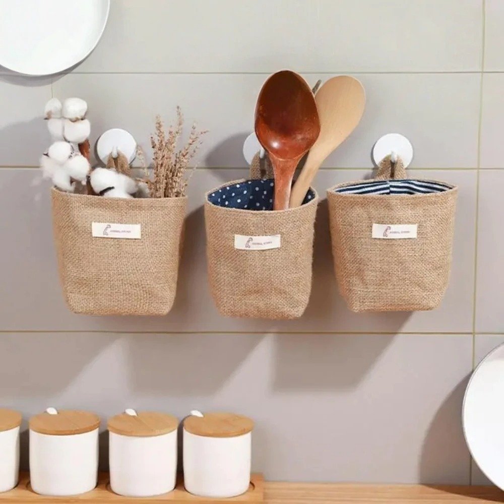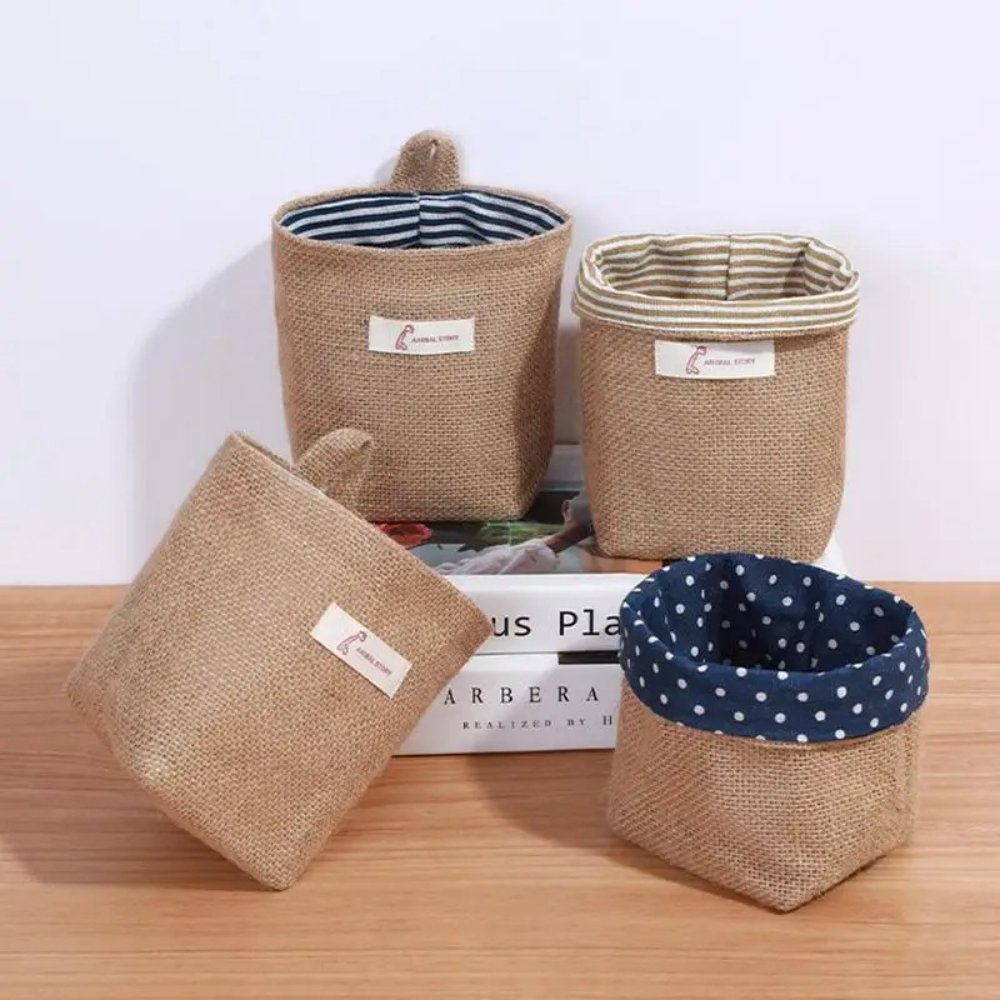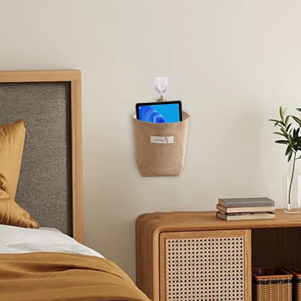 Förvaringspåse i jutebomull och linne Förvaringskorg för skrivbord Förvaringskorg Hängande ficka Organisatör Leksakskorg för kosmetika Förvaringslåda Dekor