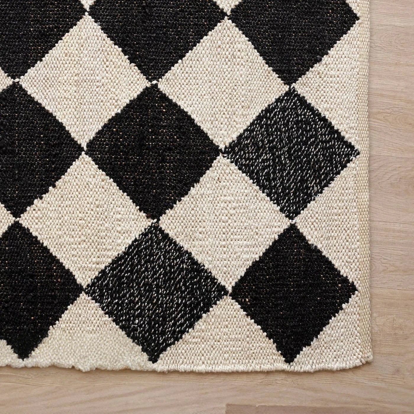 Förhöj ditt utrymme med den unika charmen hos denna svarta jute harlequin trellis-områdesmatta