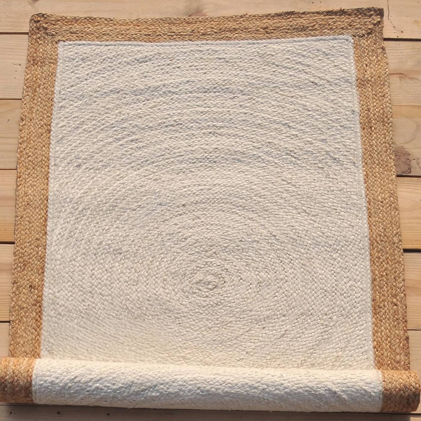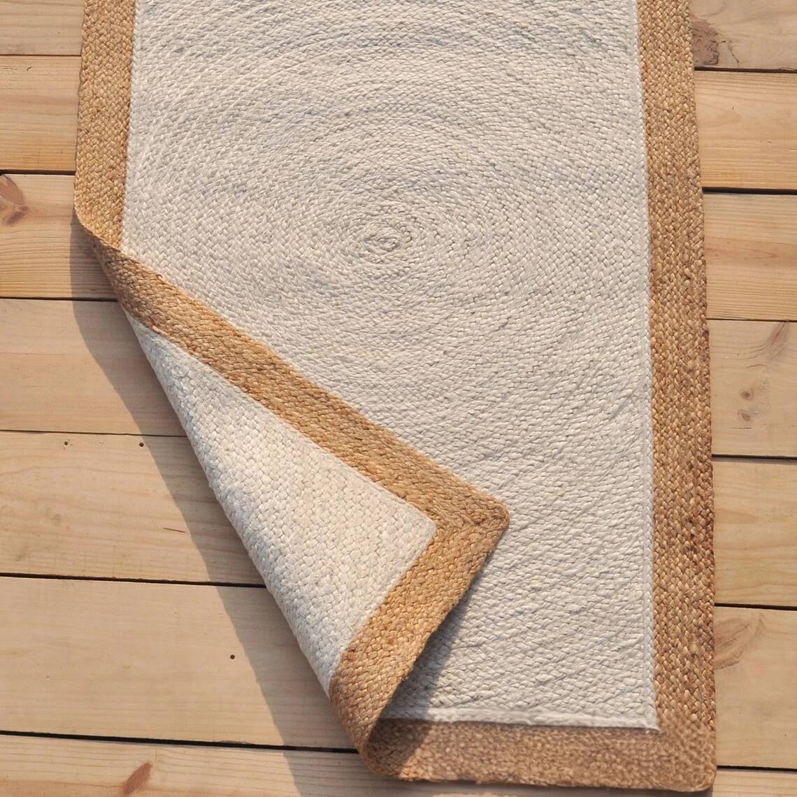 Lyft ditt utrymme med denna eleganta off-white jute-matta med en chic beige kant